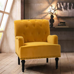 Elevate your space with the Esther Comfy Accent Chair — a perfect blend of classic charm and modern style. Wrapped in luxe velvet with button tufting, nailhead trim, and carved wood legs, it offers both elegance and comfort. With plush foam seating and a durable frame, it’s ideal for lounging in style.